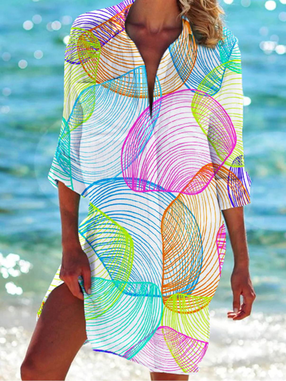 Denne kjole er ikke kun velegnet til en dag på stranden, men kan også bæres til en havefest eller en sommeraften i byen. Det er en alsidig kjole, der helt sikkert vil blive en favorit i din garderobe.